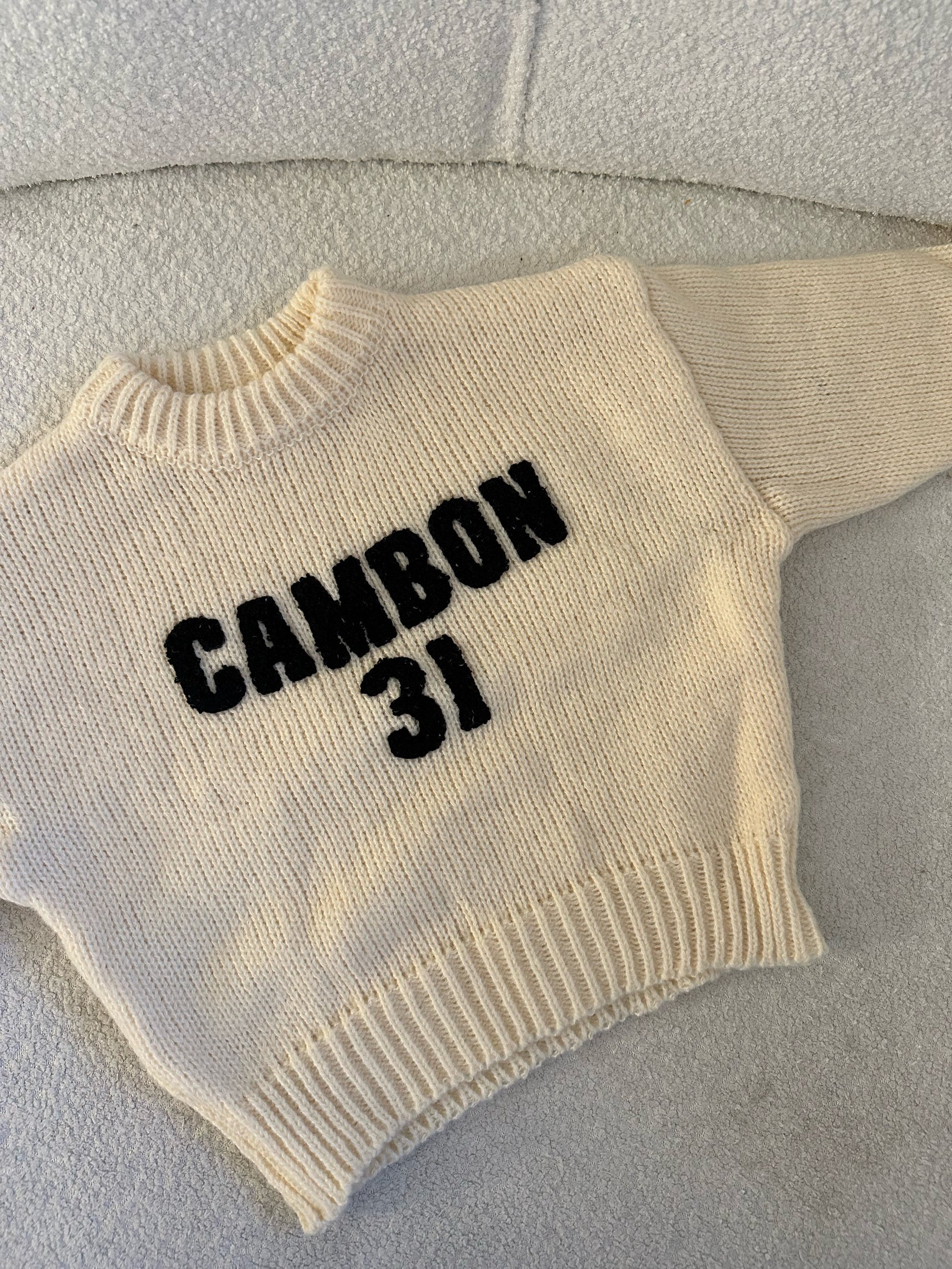 We call it 'CHOUPETTE' our cosy knitted jumper with boucle lettering. Cambon 31 the most iconic address in Paris. Knitted in super soft vanilla yarn with contrast black boucle lettering.